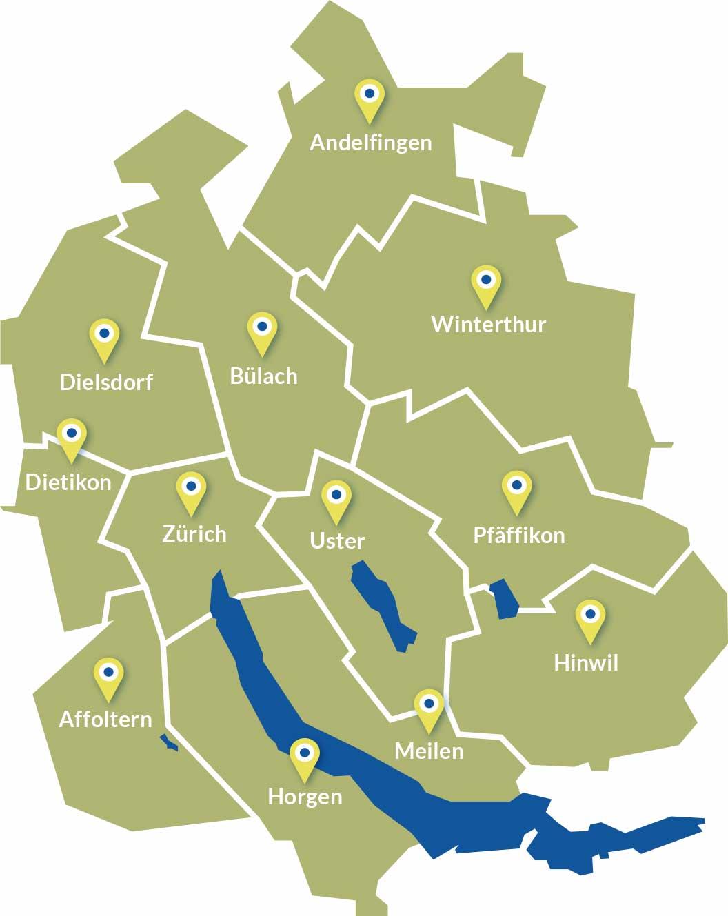 Auf der Karte finden Sie die für Ihre Wohngemeinde zuständige Fachstelle für Alkohol- und Suchtfragen.